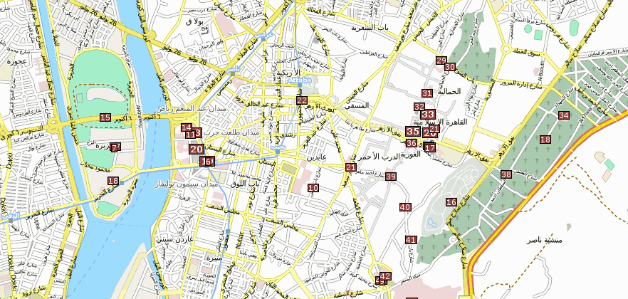 Zusammenstellung aller Touristenattraktionen von Kairo im Stadtplan.
